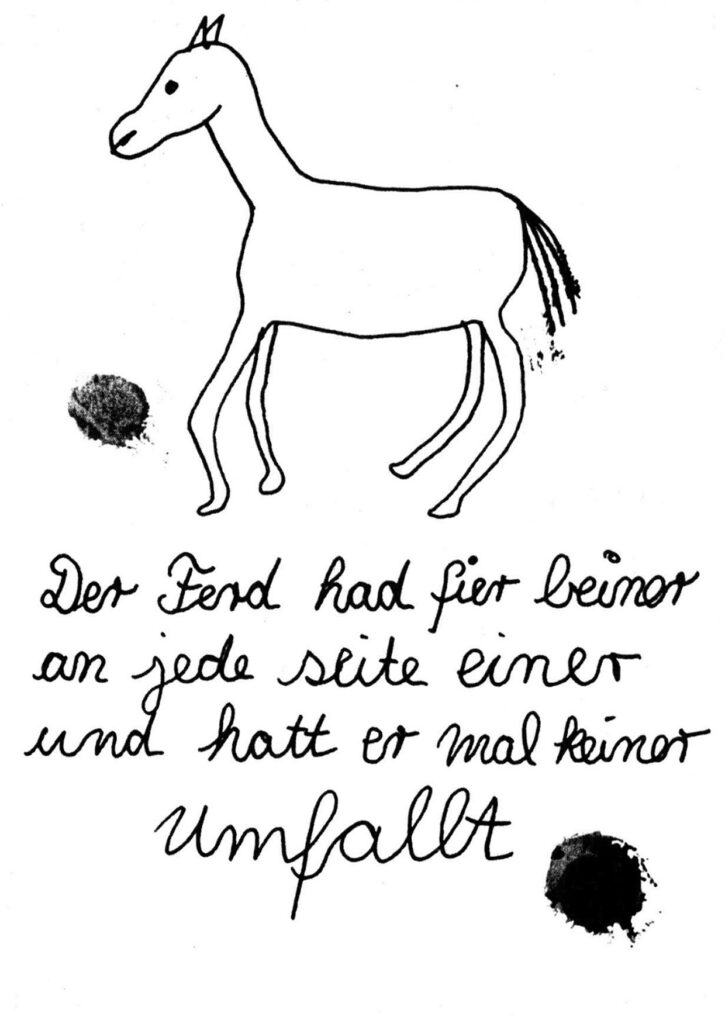 „Der Ferd had fier beiner an jede seite einer und hatt er mal keiner umfallt.“